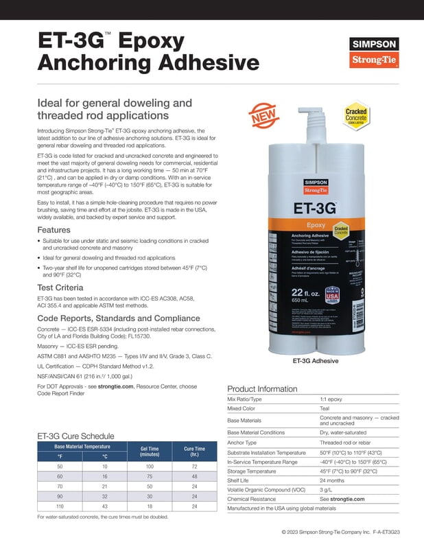 Epoxy Anchoring Adhesive - 22oz. (ET-3G) Simpson Strong Tie
